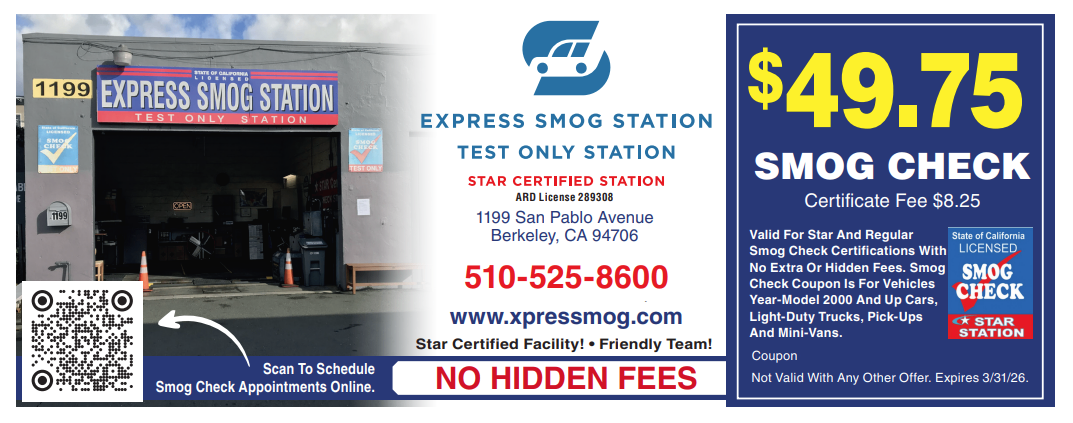 Smog Check Inspection Services Near The City of Berkeley - Albany - El Cerrito - Richmond